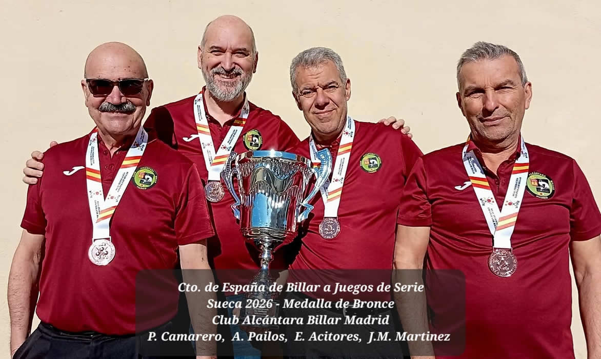 La Selección Madrileña se ha proclamado campeona de España de Selecciones Autonómicas de Billar a Tres Bandas. Cataluña obtuvo la medalla de Plata y Región de Murcia y Galicia medallas de Bronce. ¡Enhorabuena a nuestra Selección! |